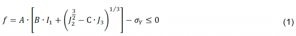 The model parameter 𝐵 is set to be zero since zirconium is considered to be pressure insensitive, and the parameters 𝐴, 𝐶 are calibrated by referring to the work of Paredes and Wierzbcki [16]. 𝜎𝑌 is the yield strength of the material. 𝐼1 is the first stress invariant, and 𝐽2, 𝐽3 are the second and third stress deviator invariant, respectively.