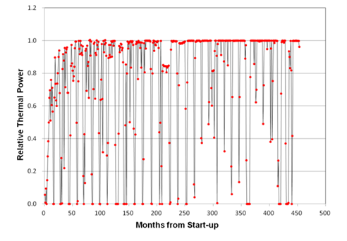 Figure 1. Monthly normalized reactor thermal power level for the plant