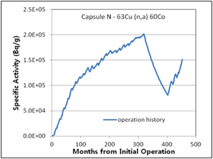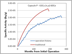 In the 63Cu(n,a)60Co reaction of capsules V and T in (Table 4), the traditional calculated activity results seem to fit better with measured activity results because the effect of measurement error may be larger than the effect of considering the operation history. Except for these two cases, the method considering the operation history has less error than the traditional method.