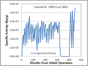 Figure 11. Specific activities considering operation history for 6th surveillance capsule N