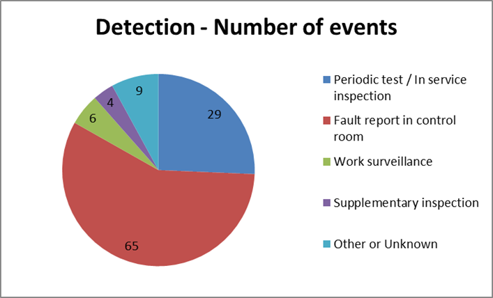Figure 2 (up) shows the event distribution related to plant status. Nearly half of the events took place during power operation. Figure 2 (down) indicates that the major part of the events were detected by „fault report in control room“ (58%) followed by „periodic test / in-service inspection“ (26%). The fact that one of four ageing events were detected in periodic tests or in-service inspections highlights the importance of having sound inspection and maintenance programmes to avoid sudden failures during power operation with greater implications on nuclear safety.