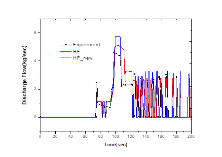 We compare the results with the existing Henry-Fauske critical flow model using the newly added Henry-Fauske critical flow model in the simulation with SPACE code for discharge of coolant through the PORV and the SRV. Overall, the opening points are similar, but there are some differences in the amount of discharge. When using the newly added Henry-Fauske critical flow model, we can confirm that the maximum discharge flow rate is higher and conservatively predicted.